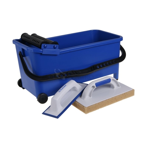 Plastový- polypropylen plastová rukojeť, mytí obkladů po spárování, dvojité plastové válečky s kolíky, které vniknou do otvorů v kbelíku a zamezí pohybu válečků po kbelíku odstranění přebytečné vody z hladítka.