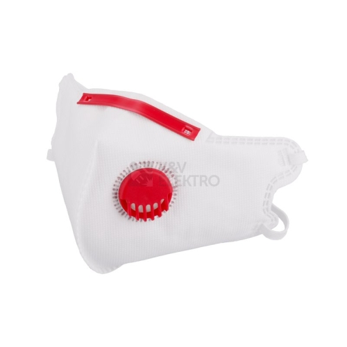 Skládaný respirátor s výdechovým ventilkem, filtrační médium z polypropylenu, nastavitelná nosní svěrka, nastavitelná délka pomocí dvojitého gumového pásku, měkká nosní pěna, FFP2, CE EN 149.