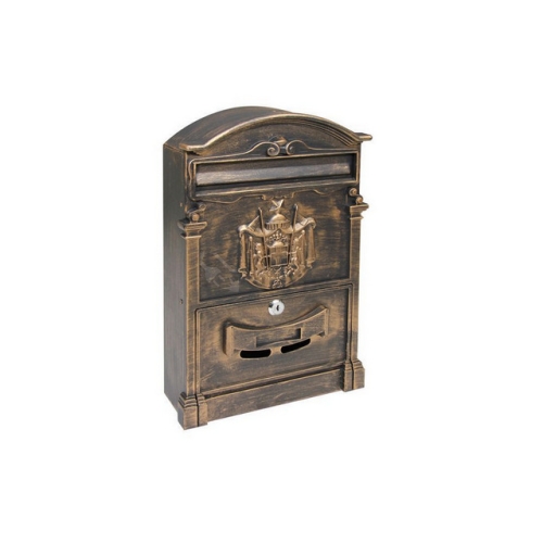 Ocelová rustikální schránka s hliníkovým čelemRozměr š/v/h: 252 x 410 x 80 mm, Rozměr vhozu š/v: 221 x 36 mm, Síla materiálu: 1,8 mm, Hmotnost netto: 1,6 kgBalení vč. mont. materiálu a 2 ks klíčů.Barva: zlatá prášková (ZP)