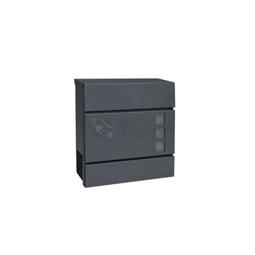 Ocelová schránka s dekorativními okénky z čirého plexiskla, neumožňující průhled do jejího vnitřkuMožnost kombinace s domovními čísly ve shodném povrchu a barvě!Rozměr š/v/h: 370 x 370 x 107 mm, Rozměr vhozu š/v: 337 x 35 mm, Síla materiálu: tělo 1 mm, , dvířka 0,7 mm, , horní kryt 1 mm, Hmotnost netto: 3,0 kgBalení vč. mont. materiálu a 2 ks klíčůPovrch: strukturovanýBarva: antracit matná - AM (RAL7016)