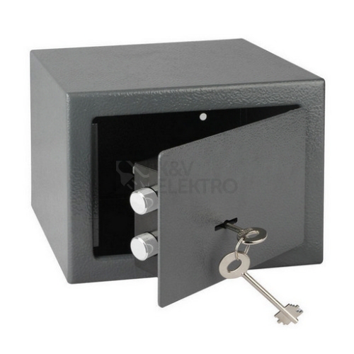 Ocelový sejf s mechanickým zámkemMožnost ukotvení do zdi nebo podlahyBalení vč. ocelových hmoždinek, filcu, šroubů a 2 ks klíčůRozměr vnější š/v/h: 230 x 170 x 170 mm, Rozměr vnitřní š/v/h: 228 x 168 x 110 mm, Objem: 4 lHmotnost netto: 3,1 kgSíla materiálu:dveře 3 mm, plášť 1,5 mm, Barva:šedá (RAL7016)