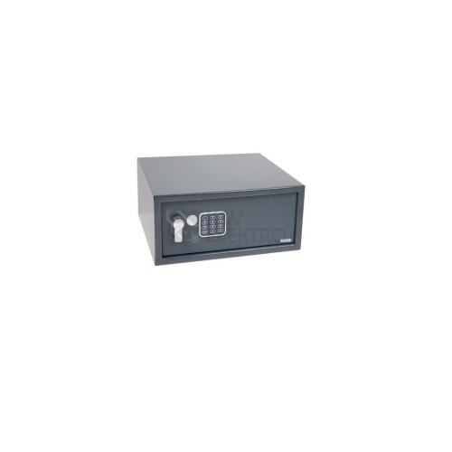 Ocelový sejf s elektronickým zámkem, číselnou klávesnicí a páčkou k otevřeníUživatelský kód může obsahovat 3-8 číslic, tzn. až 100 000 000 kombinací kódůČasová blokace zámku po 3 chybných pokusechIndikace nízkého stavu baterieMožnost ukotvení do zdi, nebo podlahyBalení vč. baterií AA 4 ks, 2 ks nouzových klíčů, filcu, ocelových hmoždinek a šroubůRozměr vnější š/v/h:430 x 200 x 380 mm, Rozměr vnitřní š/v/h:426 x 196 x 320 mm, Síla materiálu:dveře 4 mm, plášť 2 mm, Objem: 27 lHmotnost netto: 11,2 kgBarva: šedá (RAL7016)