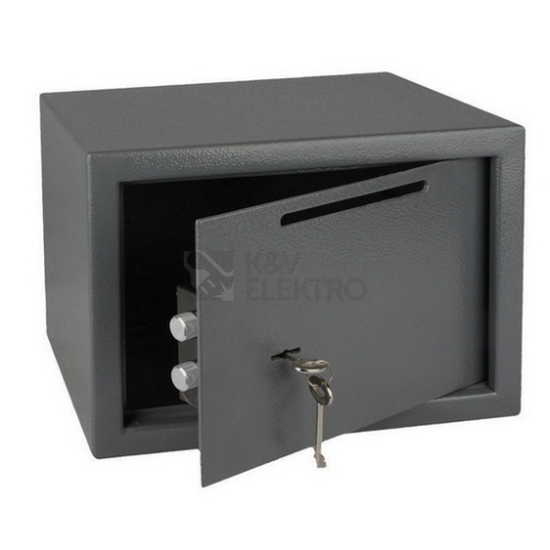 Vhozový ocelový sejf s mechanickým zámkem.Rozměr vnější š/v/h: 350 x 250 x 250 mm, Rozměr vnitřní š/v/h: 346 x 246 x 190 mm, Rozměr vhozu š/v: 153 x 10 mm, Objem: 16 lHmotnost netto: 8,9 kgSíla materiálu: dveře 4 mm, , plášť 2 mm, Barva: šedá (RAL7016)Možnost ukotvení do zdi nebo podlahy.Balení vč. ocelových hmoždinek, šroubů a 2 ks klíčů.