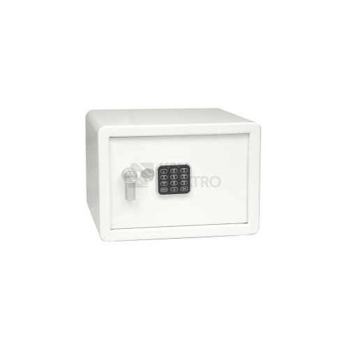 Ocelový sejf s elektronickým zámkem, číselnou klávesnicí a páčkou k otevřeníUživatelský kód může obsahovat 3-8 číslic, tzn. až 100 000 000 kombinací kódůČasová blokace zámku po 3 chybných pokusechIndikace nízkého stavu baterieMožnost ukotvení do zdi, nebo podlahyBalení vč. baterií AA 4 ks, 2 ks nouzových klíčů, 1 ks vyjímatelné police, filcu, ocelových hmoždinek a šroubůRozměr vnější š/v/h: 350 x 250 x 250 mm, Rozměr vnitřní š/v/h: 346 x 246 x 190 mm, Síla materiálu:dveře 4 mm, plášť 2 mm, Objem:16 litrůHmotnost netto:8,8 kgBarva:bílá (RAL9003)