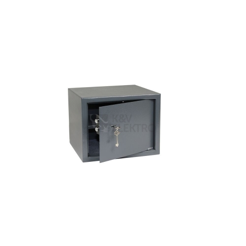 Ocelový sejf s mechanickým zámkemSoučástí sejfu je police a filcRozměr vnější š/v/h: 380 x 300 x 300 mm, Rozměr vnitřní š/v/h: 376 x 296 x 240 mm, Hmotnost netto: 12 kgSíla materiálu: dveře 4 mm, , plášť 2 mm, Barva: šedá (RAL 7016)Možnost ukotvení do zdi nebo podlahy.Balení vč. ocelových hmoždinek, šroubů a 2 ks klíčů.Objem: 27 l