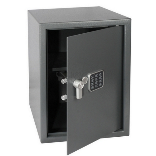 Ocelový sejf s elektronickým zámkem, číselnou klávesnicí a páčkou k otevřeníUživatelský kód může obsahovat 3-8 číslic, tzn. až 100 000 000 kombinací kódů.Časová blokace zámku po 3 chybných pokusech.Indikace nízkého stavu baterie.Síla materiálu: dveře 4 mm, , plášť 2 mm, Rozměr vnější š/v/h: 350 x 500 x 330 mm, Rozměr vnitřní š/v/h: 346 x 496 x 270 mm, Objem: 46 lHmotnost netto: 17,3 kgBarva: šedá (RAL7016)Možnost ukotvení do zdi nebo podlahy.Balení vč. baterií AA 4 ks, 2 ks nouzových klíčů, 2 ks polic, vnitřní plstě, ocelových hmoždinek a šroubů.