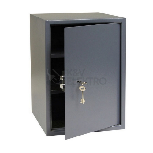 Ocelový sejf s mechanickým zámkemRozměr vnější š/v/h: 350 x 500 x 330 mm, Rozměr vnitřní š/v/h: 346 x 496 x 270 mm, Objem: 46 lHmotnost netto: 17,6 kgSíla materiálu: dveře 4 mm, , plášť 2 mm, Barva: šedá (RAL7016)Možnost ukotvení do zdi nebo podlahy.Balení vč. ocelových hmoždinek, 2 ks polic, vnitřní plstě, šroubů a 2 ks klíčů.