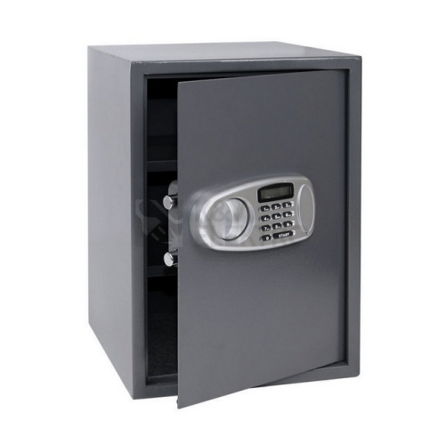 Ocelový sejf s elektronickým zámkem a LCD displejemMožnost ukotvení do zdi nebo podlahyBalení vč. baterií AA 4 ks, 2 ks nouzových klíčů, 2 ks vyjímatelných polic, filcu, ocelových hmoždinek a šroubůRozměr vnější š/v/h: 350 x 500 x 330 mm, Rozměr vnitřní š/v/h: 346 x 496 x 270 mm, Objem: 46 lHmotnost netto: 18,2 kgSíla materiálu:dveře 4 mm, plášť 2 mm, Barva: šedá (RAL7016)