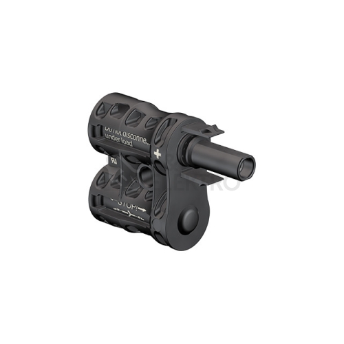 Slučovací konektor pro propojení fotovoltaických panelů se střídačem nebo pro propojení fotovoltaických panelů. Konektor je rozpojitelný a umožňuje provést dodatečné změny v zapojení fotovoltaického systému.