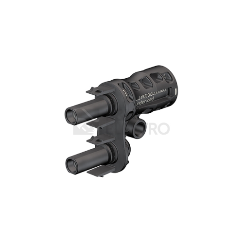 Slučovací konektor pro propojení fotovoltaických panelů se střídačem nebo pro propojení fotovoltaických panelů. Konektor je rozpojitelný a umožňuje provést dodatečné změny v zapojení fotovoltaického systému.